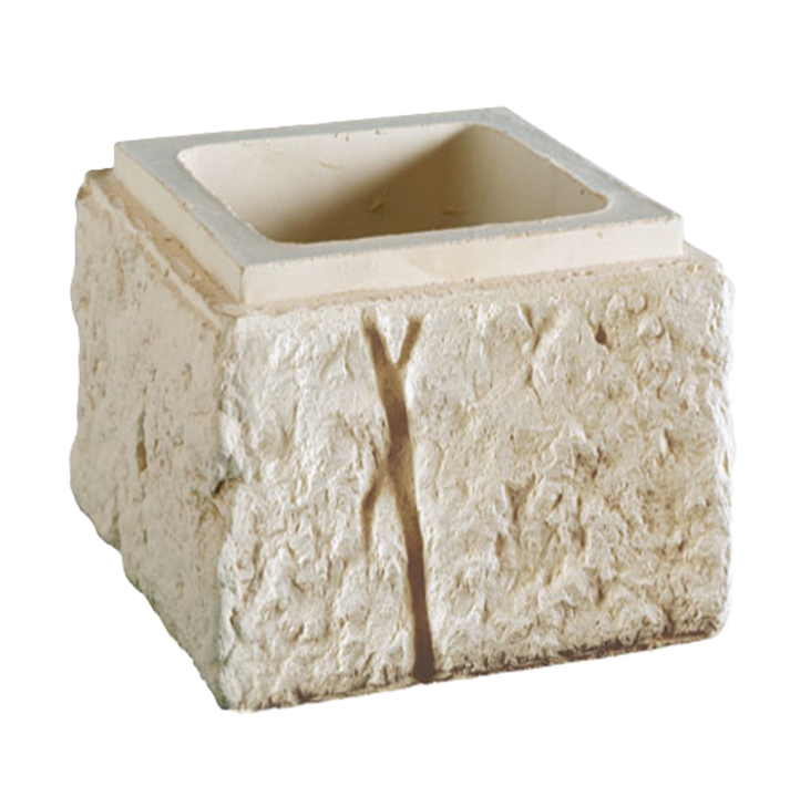 Le BOISSEAU DE PILIER BRIDOIRE est un élément cubique composé de 4 faces pleines s’empilant les uns sur les autres pour former un pilier. Le boisseau étant vide, il est aisé de passer des câbles pour un éclairage extérieur, pour un interphone ou un portail électrique. Les boisseaux reposent sur une fondation solide en béton armé pour lui assurer sa solidité et sa stabilité. Au-delà du côté esthétique du boisseau en pierre reconstituée, l’utilisation des boisseaux permet la non-construction d’un coffrage pour le coulage du béton, ce qui est à la fois plus facile et plus économique.