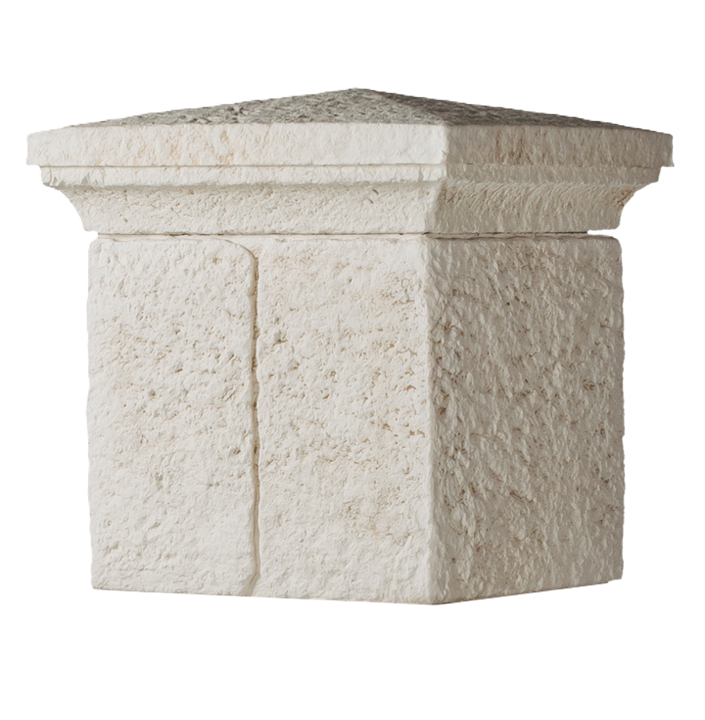 L’élément de couronnement CHAPEAU DE PILIER en association au pilier RENAISSANCE EN PIERRE RECONSTITUÉE, possède des avantages. Outre le côté esthétique par l’harmonisation parfaite au pilier, scellé au sommet il protège le pilier contre les variations climatiques et l’écoulement des eaux pluviales par temps de pluie. Ce qui permet d’éviter l’apparition de mousse verdâtre, voire noirâtre le long du revêtement de pilier.